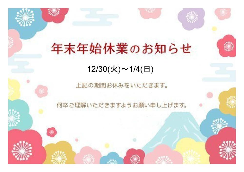 誠に勝手ながら下記の期間を年末年始休業とさせていただきます。