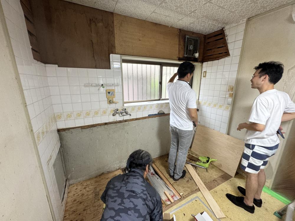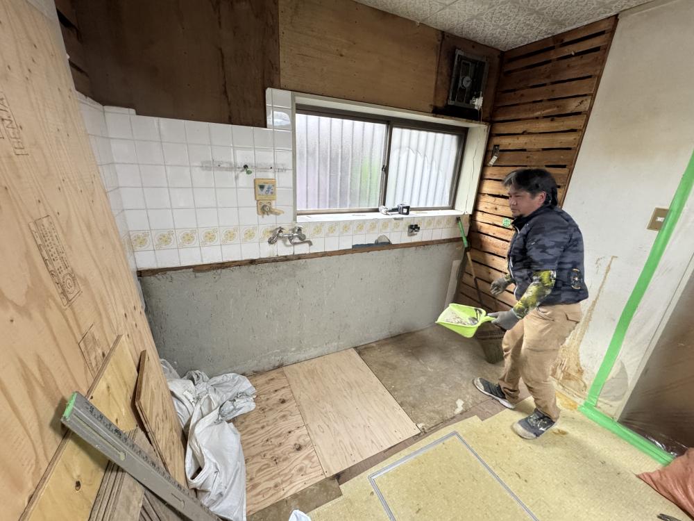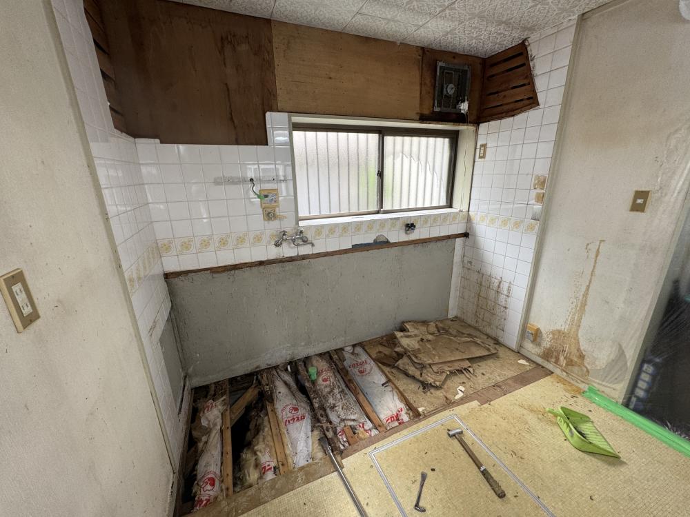 新しい床下地の改修とキッチンの解体が完了です!新しいキッチンを設置する準備を始めていきます!
