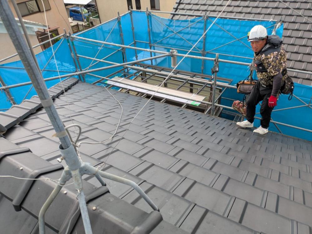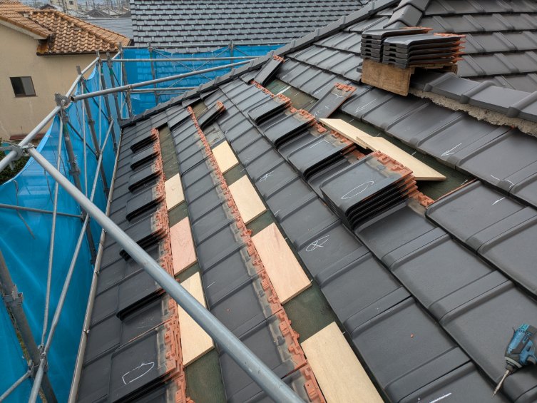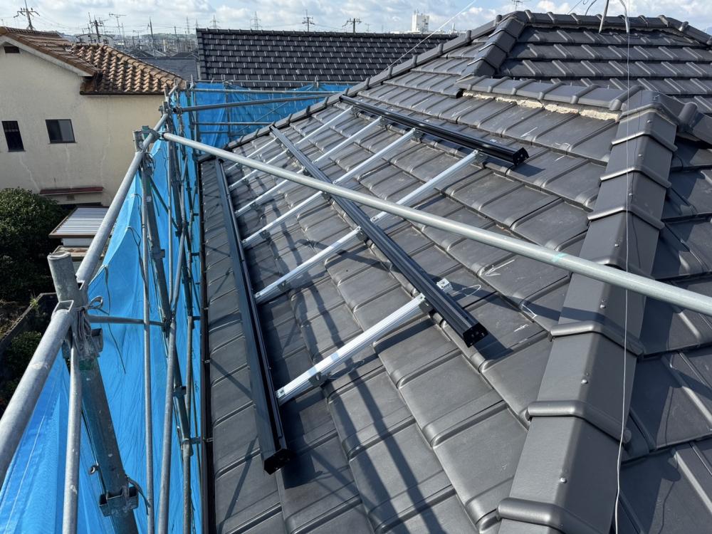 一度瓦をめくり、固定金具用の下地を取り付けていきます。
