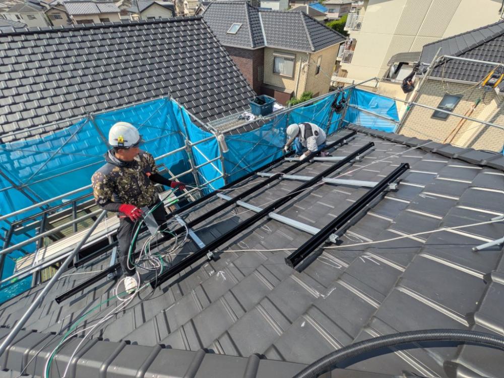 【太陽光パネル工事】先ずは固定金具の下地工事からです!
