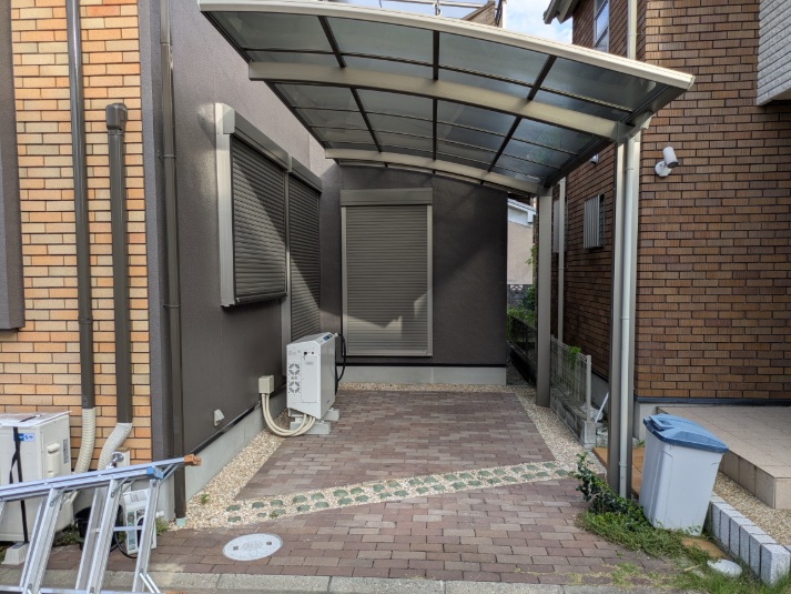レンガタイルはそのままにホワイト調の外壁からダークグレーの外壁に様変わりしました。