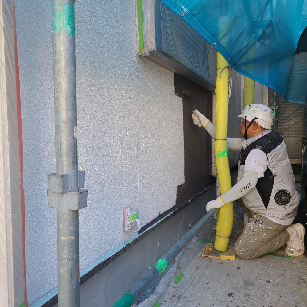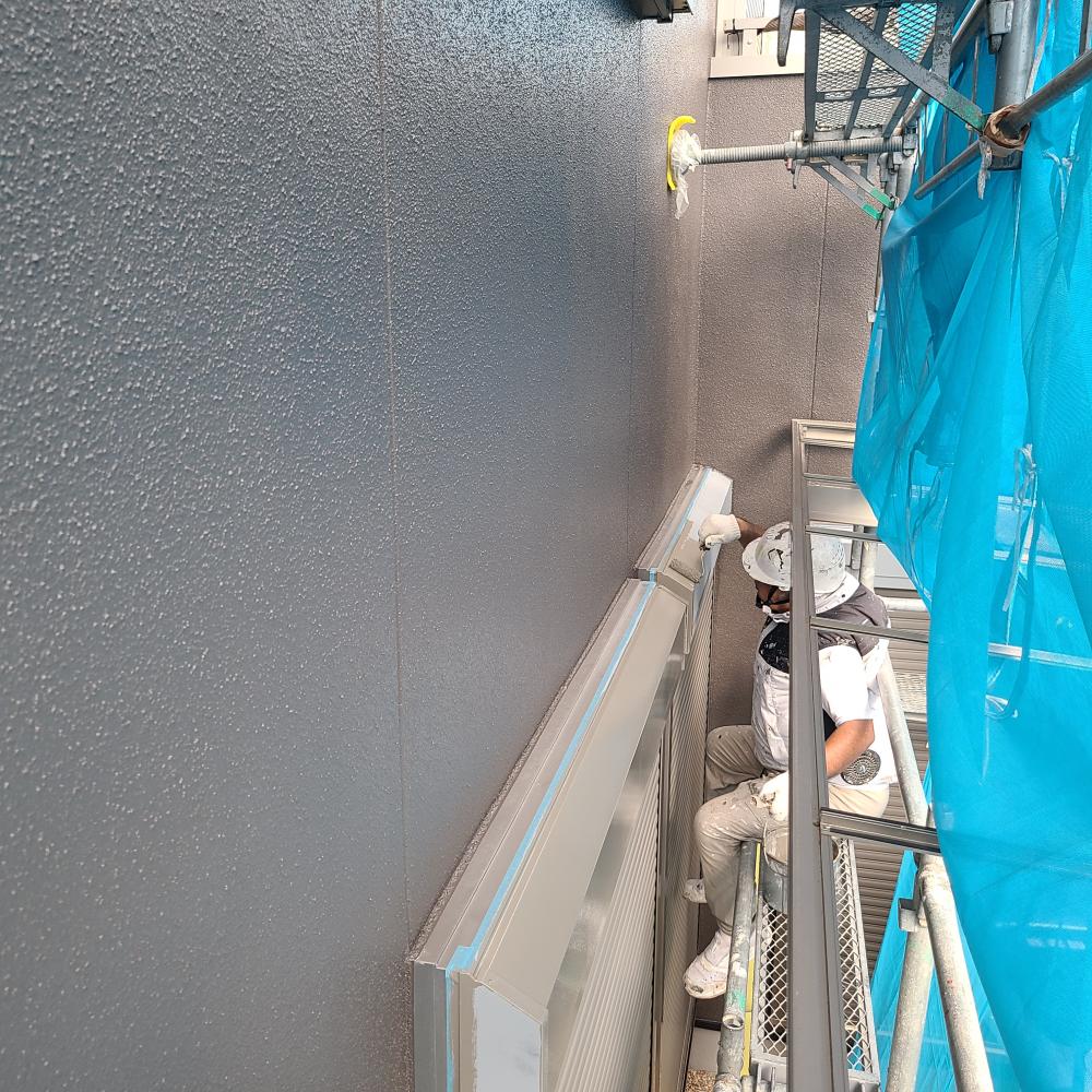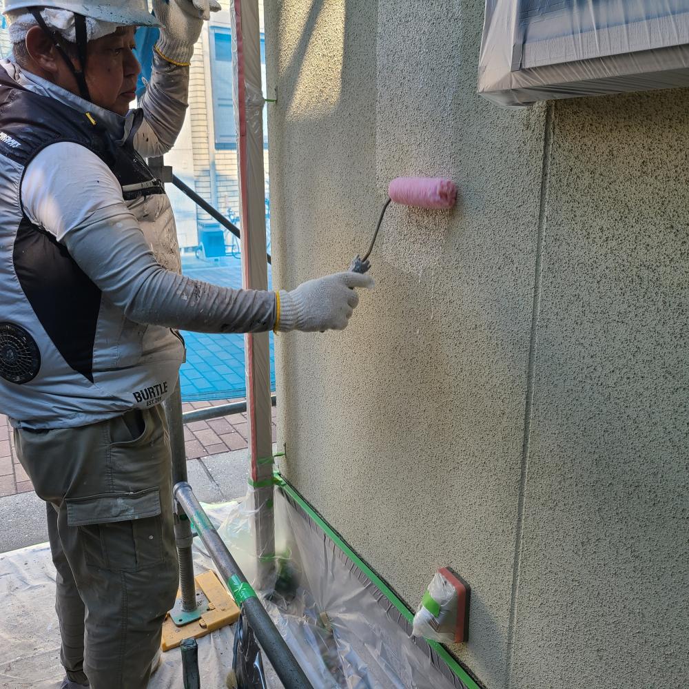 鉄部と外壁の下塗りが終了し、中塗りと上塗りを行っていきます。