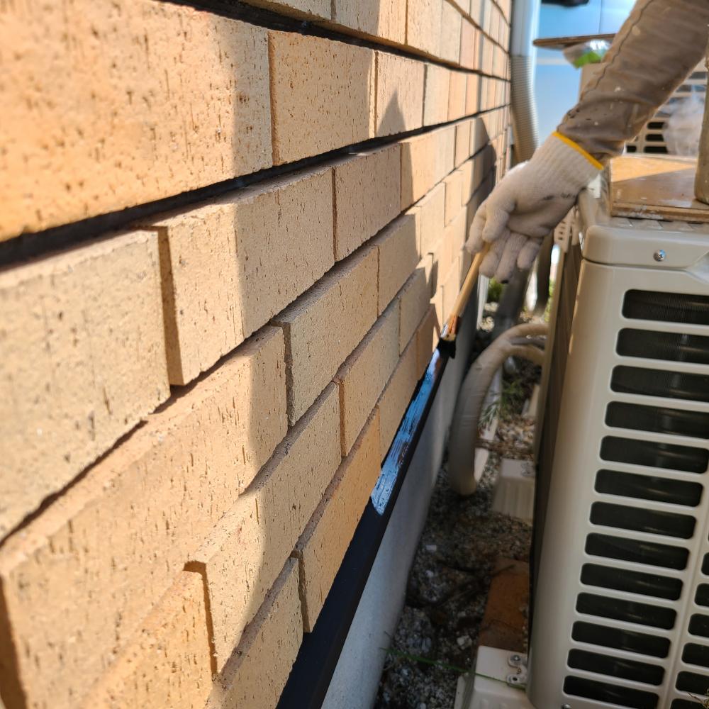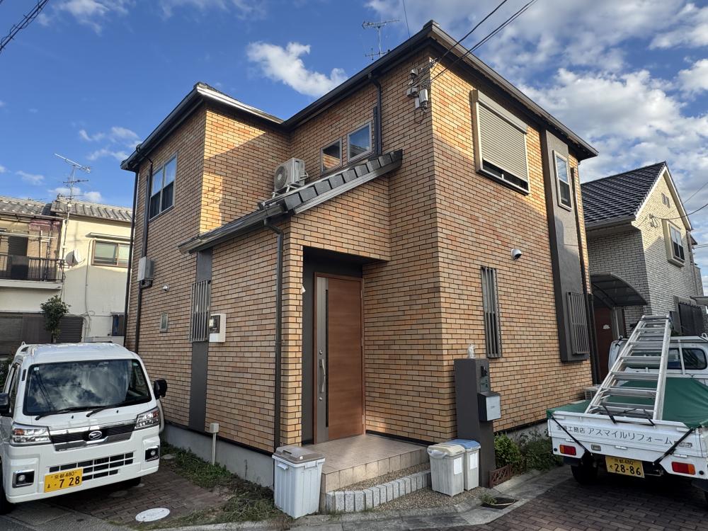 既存のレンガタイルとの配色を考えダークグレーを採用した外壁塗装工事