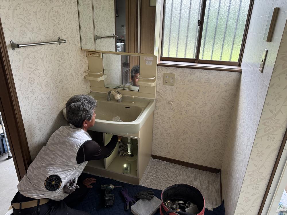 まずは既存洗面台の撤去から。ちなみにこの洗面台は約30年ほどお使い続けられたとのことでした。こまめな掃除が長持ちの秘訣ですね。