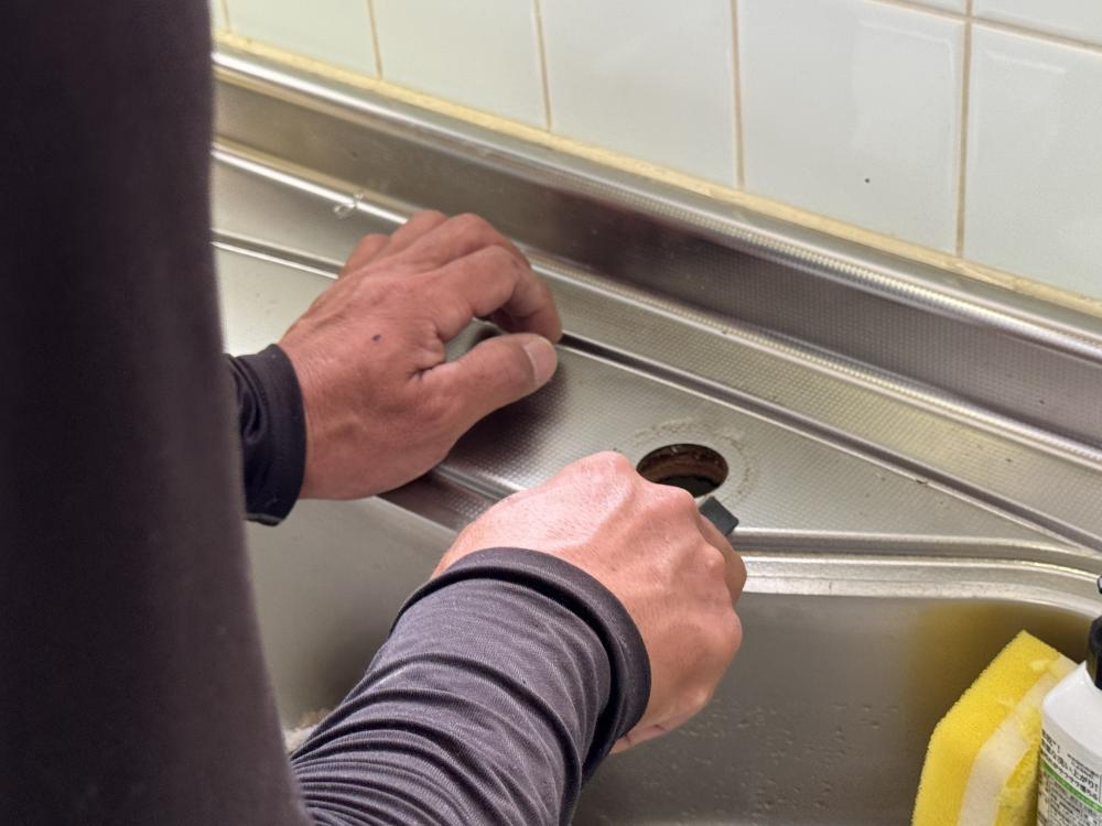 前の水栓がつけられている跡が残っていてそれをとってくれています。職人さんの気遣いを感じられますね。