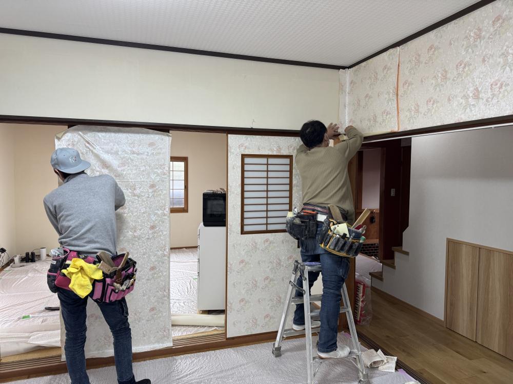 今回は、リビングと和室の二部屋のクロス張替工事を行ってまいります。
