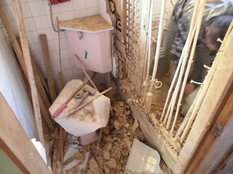 | 依頼の内容 | トイレスペース拡張工事:古い便器取り外し・水道配管移設・間仕切り壁撤去・出入り口引き戸に取り換え・床張り替え・壁紙張り替え・新しい便器取り付け・手洗い取り付け |