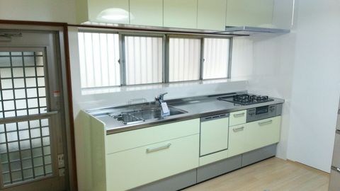 | 依頼のきっかけ | 以前のキッチンは開き扉で収納が少なく扉も木製で油汚れが落ちにくいという事で大変お困りでした。今回のキッチンは収納力のある引出しに扉は鏡面仕上げで汚れがつきにくく特にお掃除がしにくいレンジフードは内部のお掃除が一切不要のよごれんフードを採用しました! |
