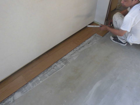 一列づつ丁寧に全面接着で貼りつけていきます。