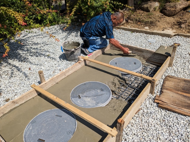 蓋周りをコンクリートで固めて設置完了です!役所に申請することで補助金を利用いたしました