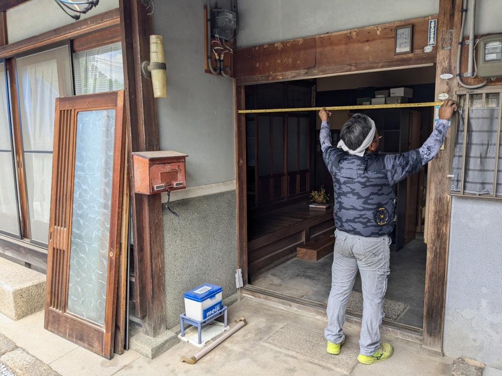 隙間風が寒く、防犯性の低い木製玄関を断熱性の高いアルミ製玄関サッシへとリフォームです!
