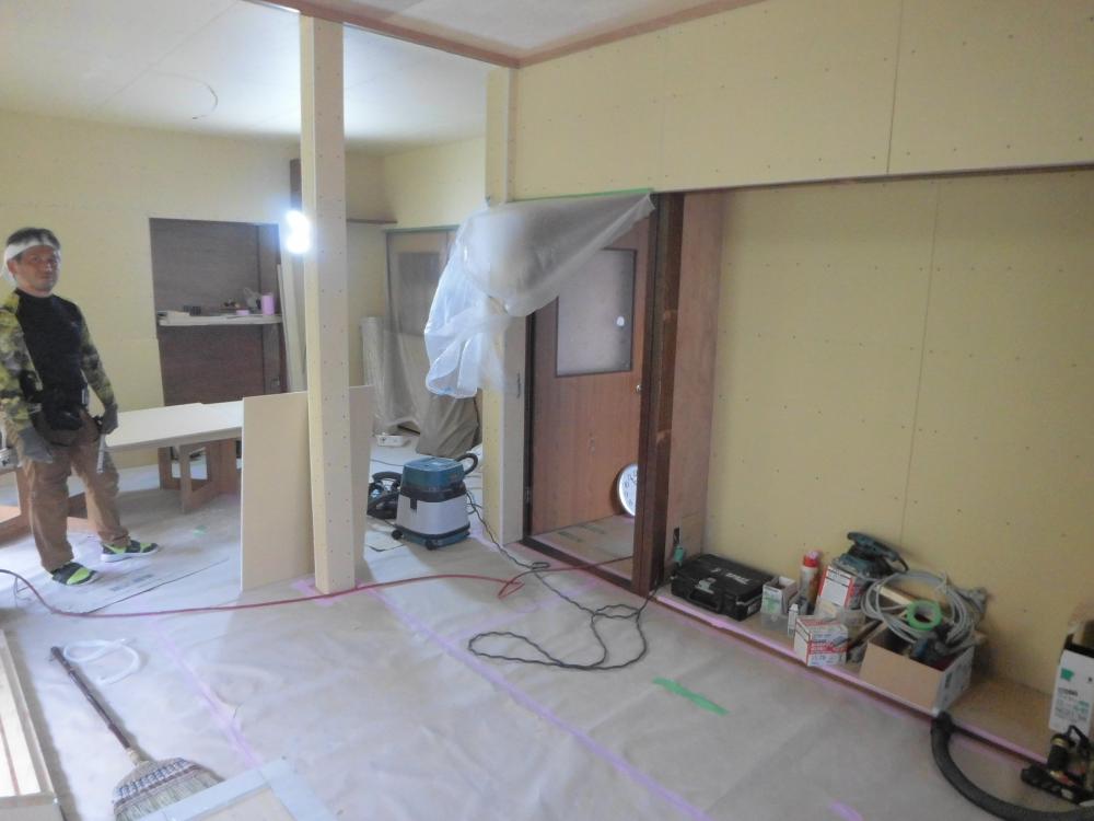 クロス仕上げのための壁下地を作っていきます