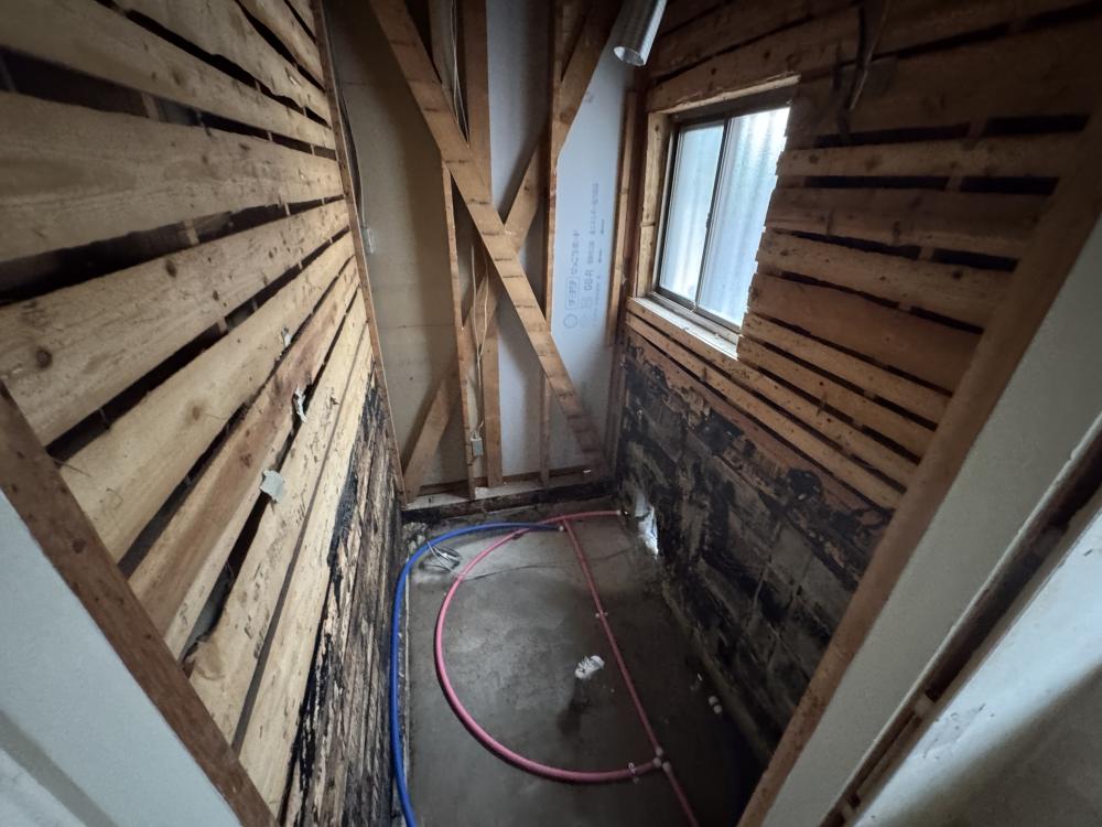 解体が終わり、タイルをはがし終わった様子がこちらになります。ユニットバスの浴槽は大きさが決まっている為、収める為にタイルをはがしました。