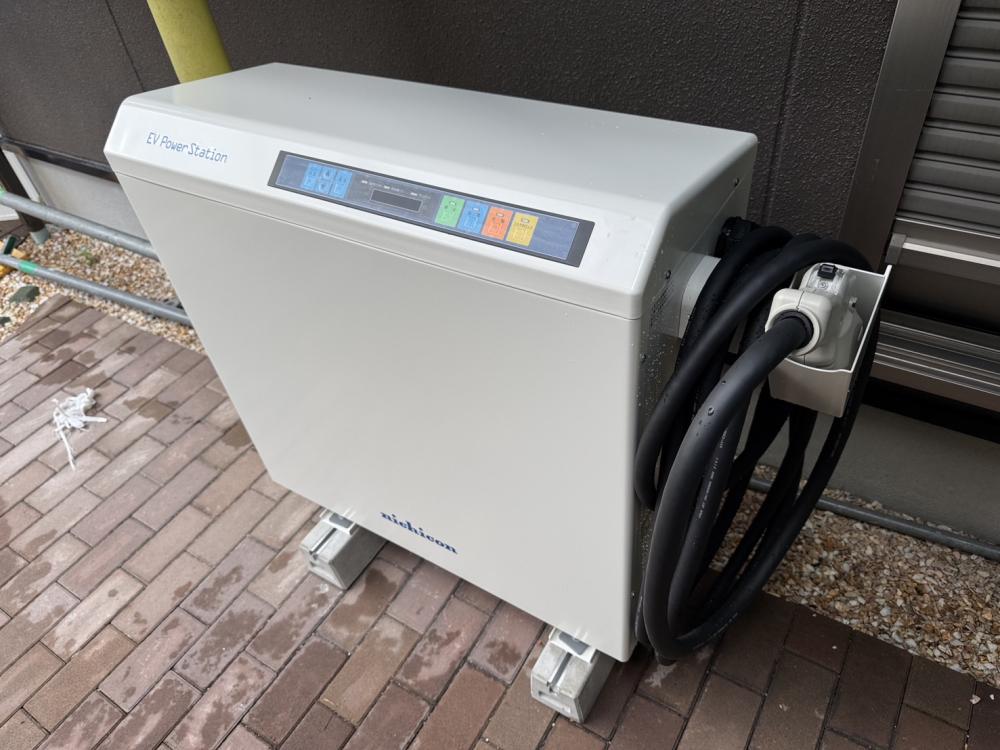 コンパクトなニチコンの据え置きタイプのV2Hです。車への充電と建物への送電が可能です!