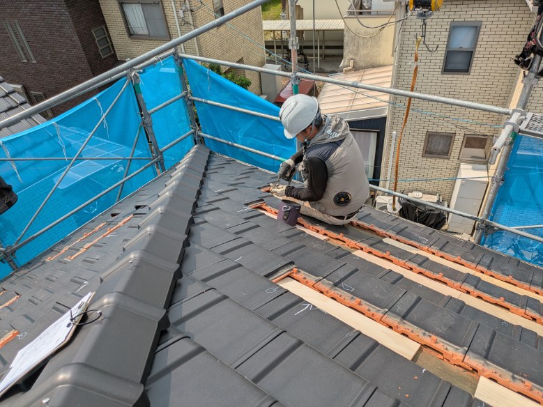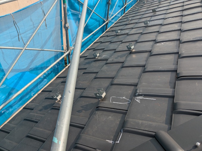 一度瓦をめくり、固定金具用の下地を取り付けていきます。