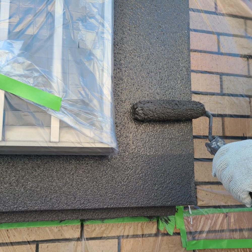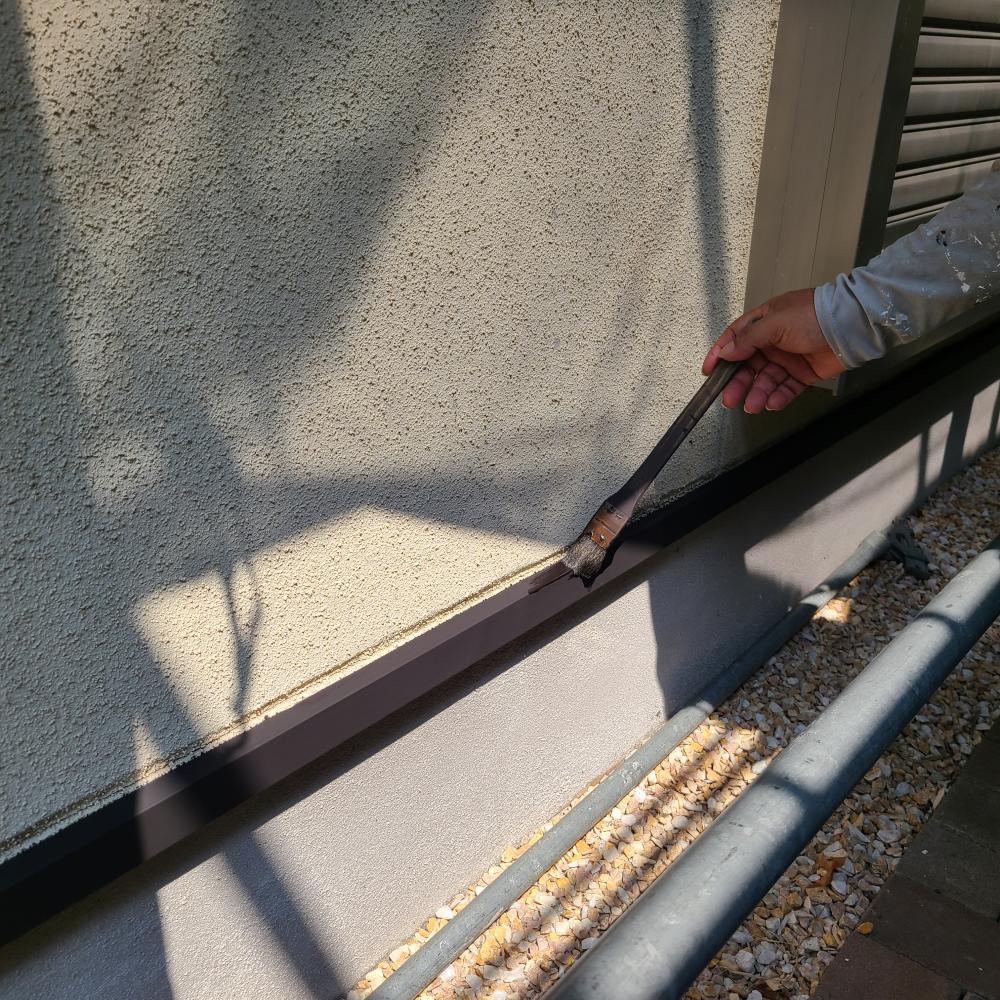 既存のレンガタイルとの配色を考えダークグレーを採用した外壁塗装工事