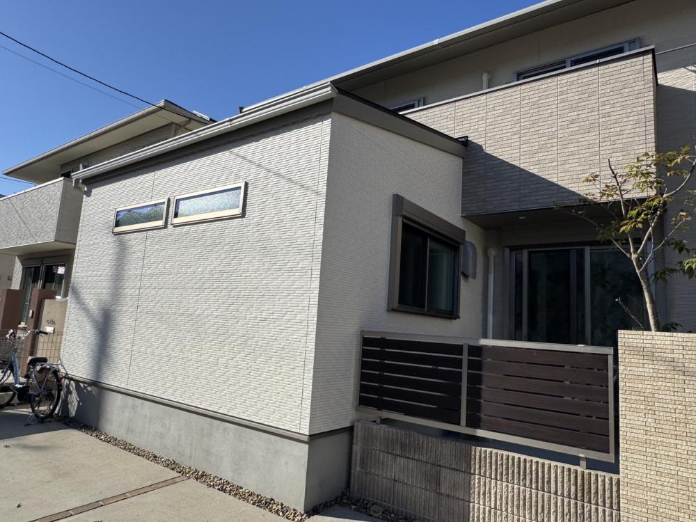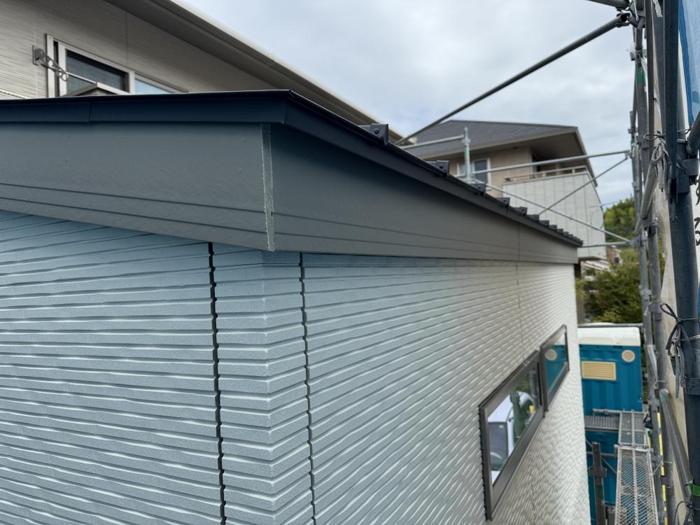 - 外壁が仕上がりました!採用した外壁材は既存建物と似たデザインとし、アクセントカラーで仕上げております。