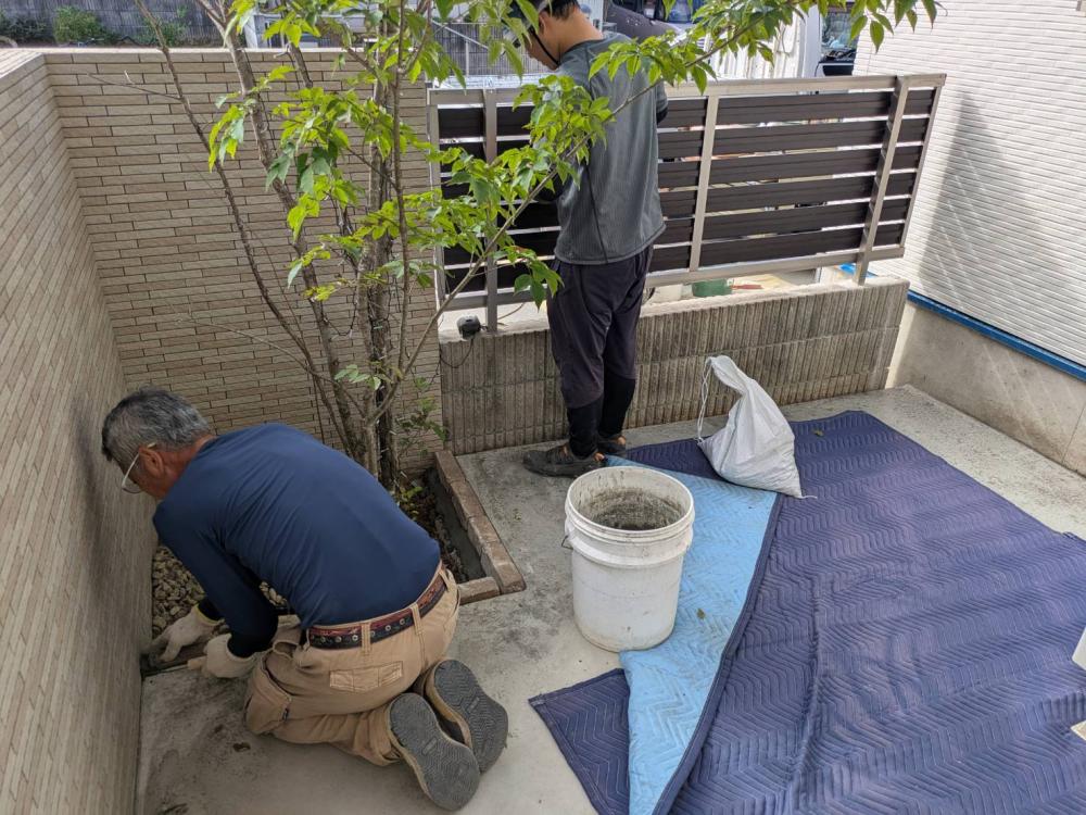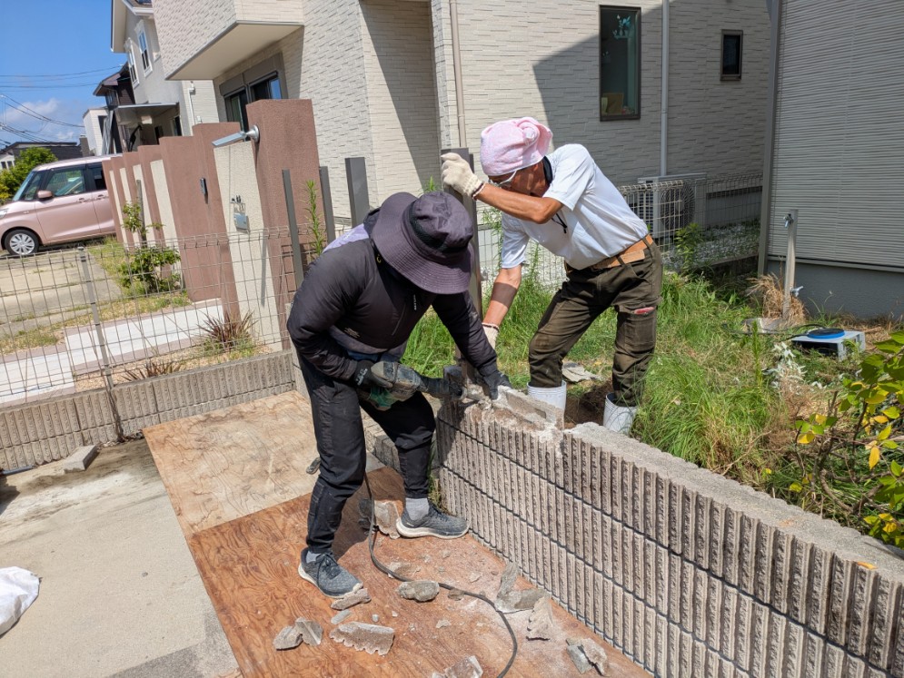 - 外構工事スタートです!ブロックの積み直しから進めていきます。