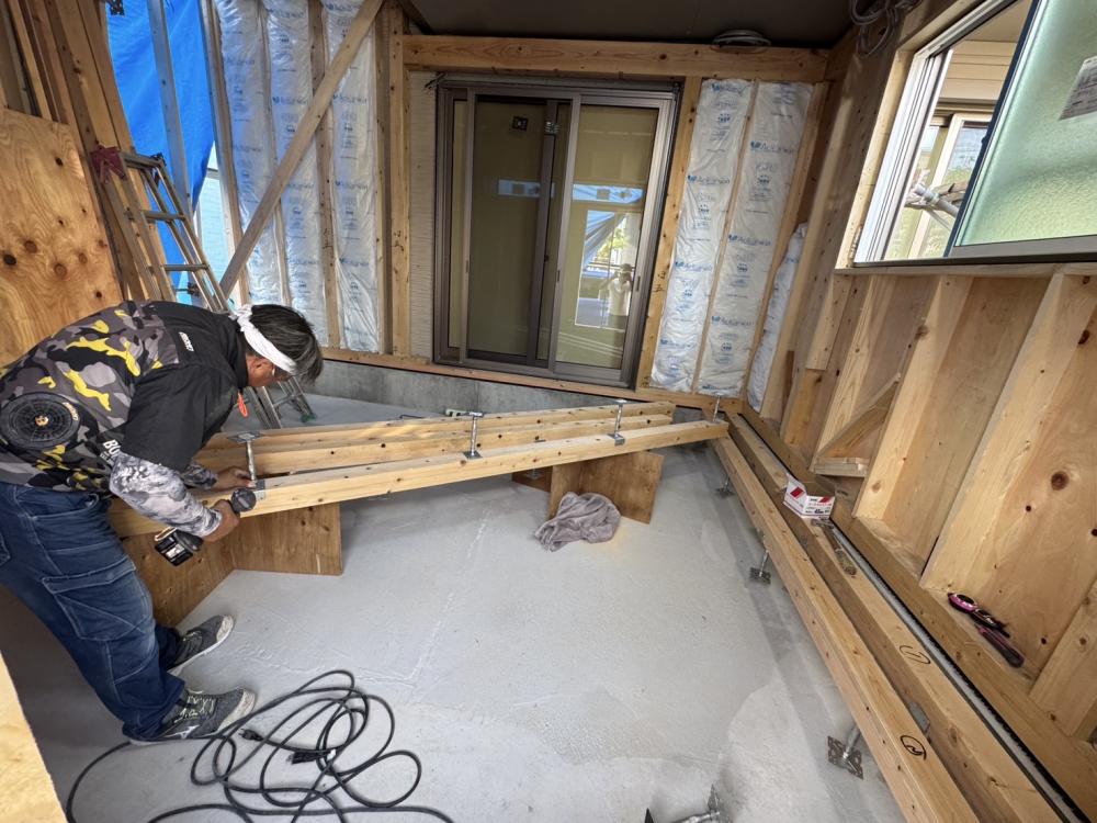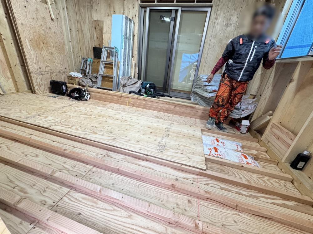- 床の下地を作っていきます!今回は防音床ですので通常レベルより低い位置での床組みとなります。