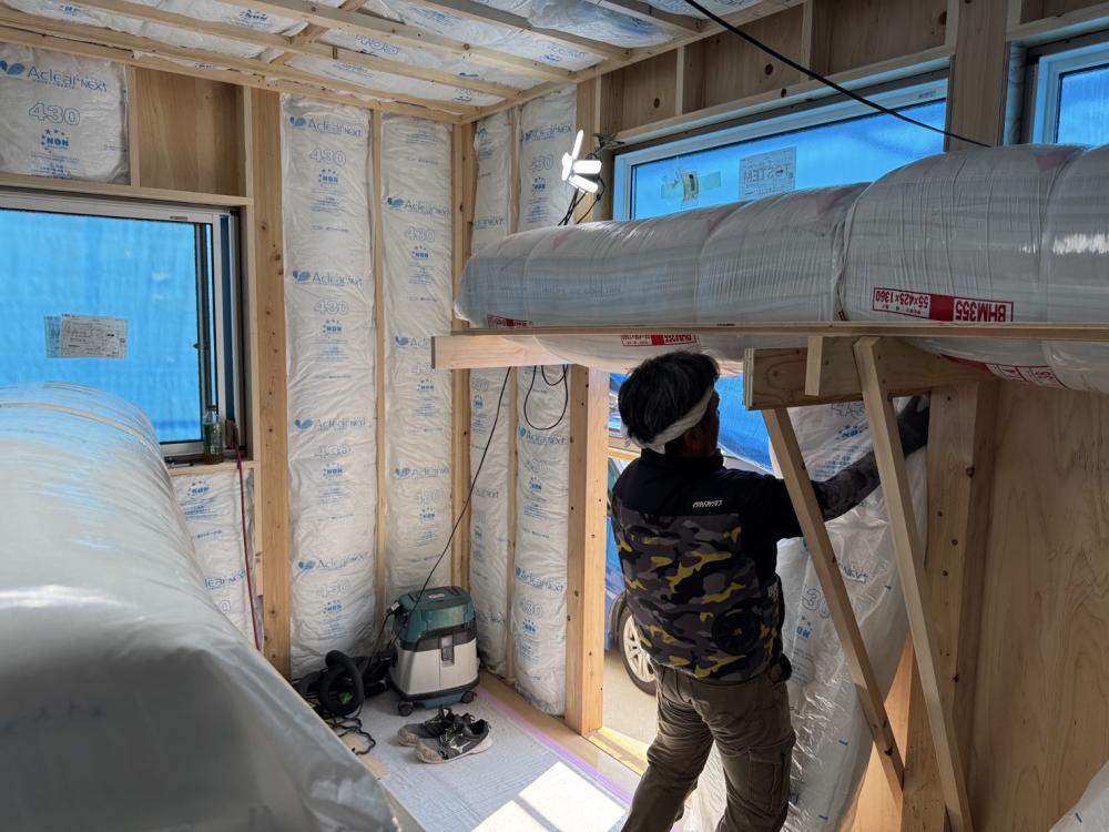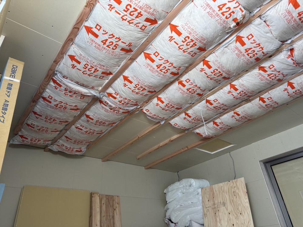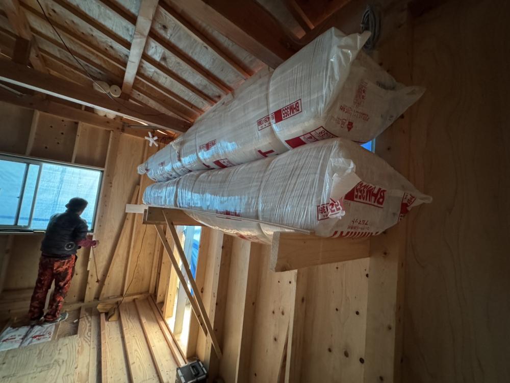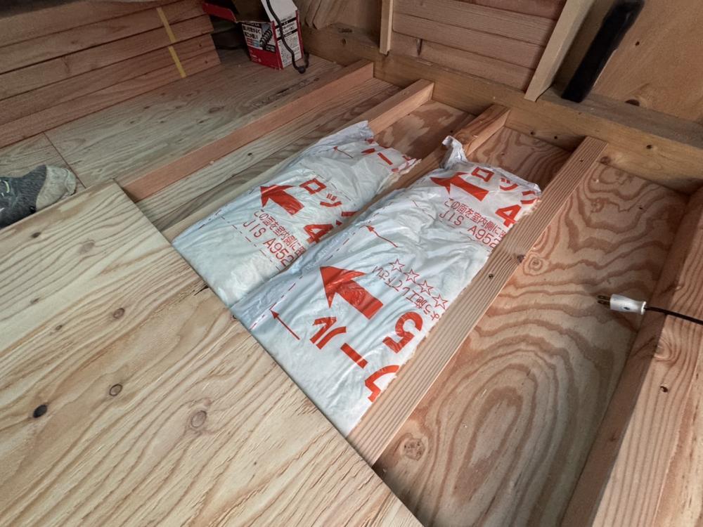 - このような形で根太と言われる木材の間に敷き詰めて施工していきます。