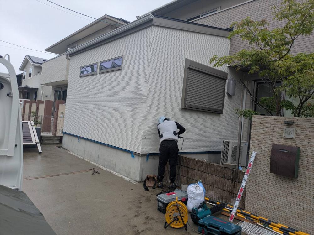 - 外壁のサイディング工事も進めてまいります!下地の防水シートの状況ですね。