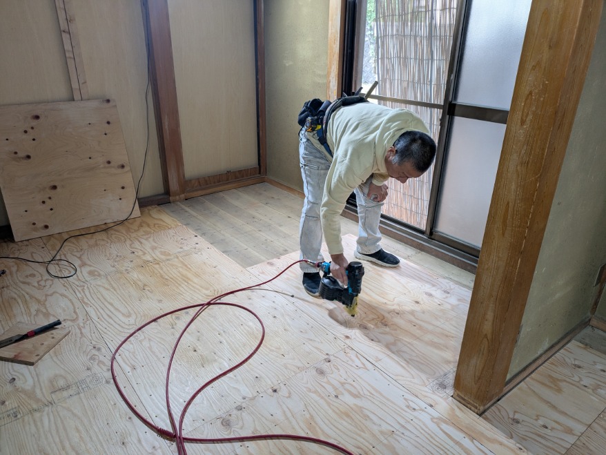 - 荒板が動かないよう増し締めしております!床鳴り対策ですね。