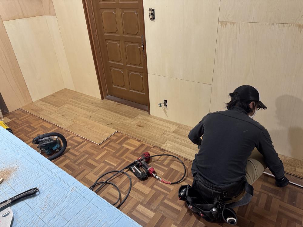 - 床の割り付けが出来たらいよいよフローリングを張っていきます!