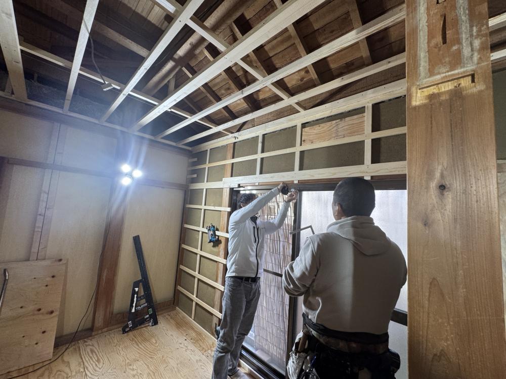 続いて、壁・天井の下地組みの様子をご覧ください。