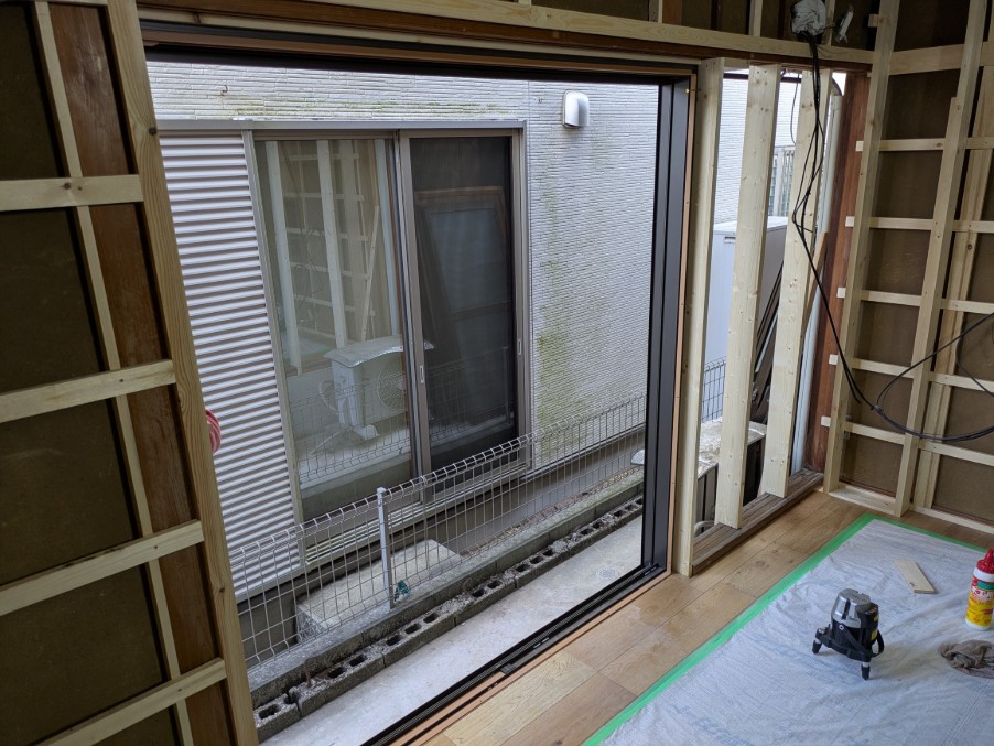 - ガラスと袖壁に断熱材が入った後ですね。ガラスは、Low-Eの複層ガラスを採用!補助金を活用したお得なリフォームです!