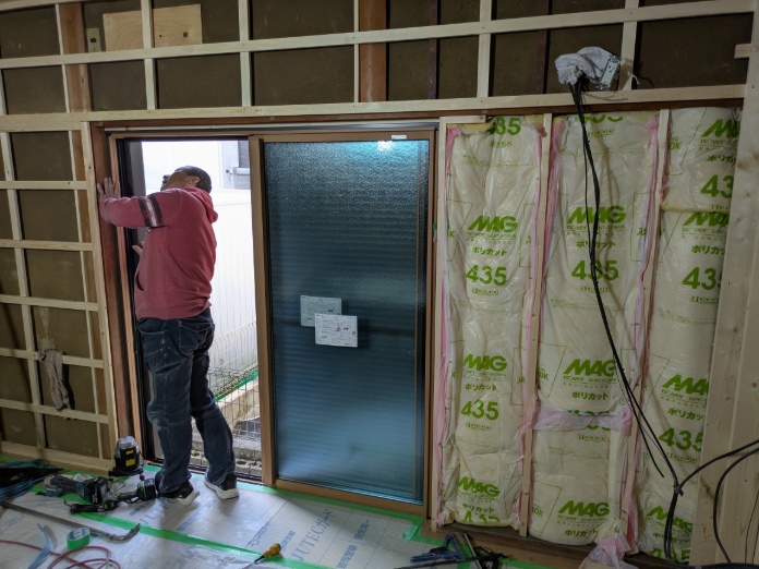 - 下地が完成し、もうすでにサッシの枠は入った状態ですね。それではガラスを入れていきましょう!