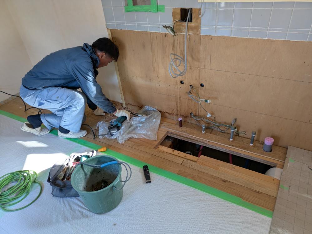 実際の工事の様子をご覧ください。先ずは古いキッチンの解体から始めていきます!