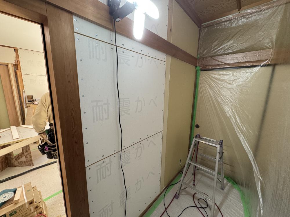 現在、奈良市M様邸にて施工中のキッチンをメインとした大規模リフォームの中で進めておりました耐震補強工事が完了いたしました!