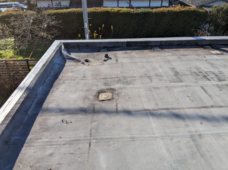 防水層に水が入り表面劣化もひどい状況でした。