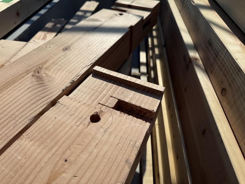 大工さんが刻んだ仕口がコチラ。仕口や継ぎ手は様々な種類があります。今は必ず金物を使用して組んでいきますが、昔は金物無しで崩れないお家を造っていました。驚きですよね。