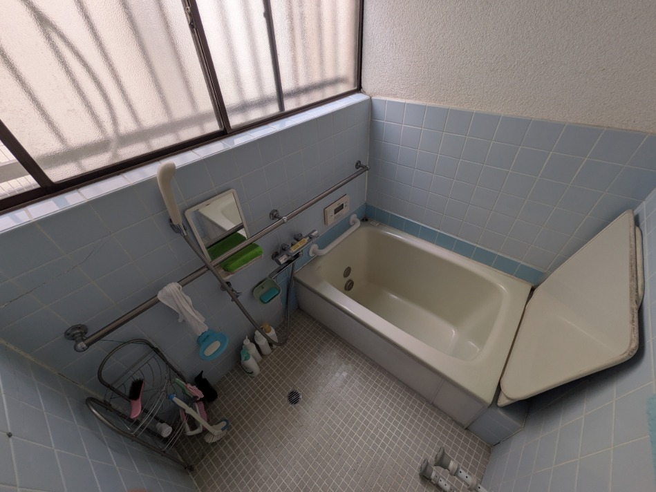 Beforeがコチラ。よくあるタイル張りの浴室ですね。 お母さまが足を滑らさないよう、ユニットバスへとリフォームです!