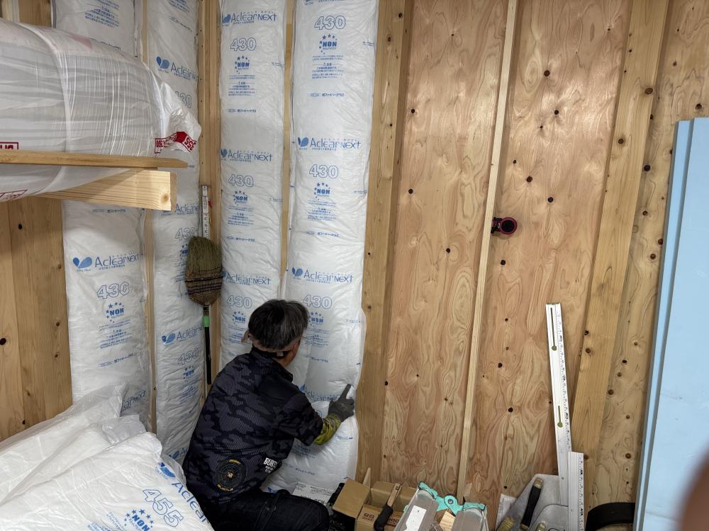 壁も同様に断熱材を仕込んでいきましょう!これでお部屋が断熱材で包まれましたね。