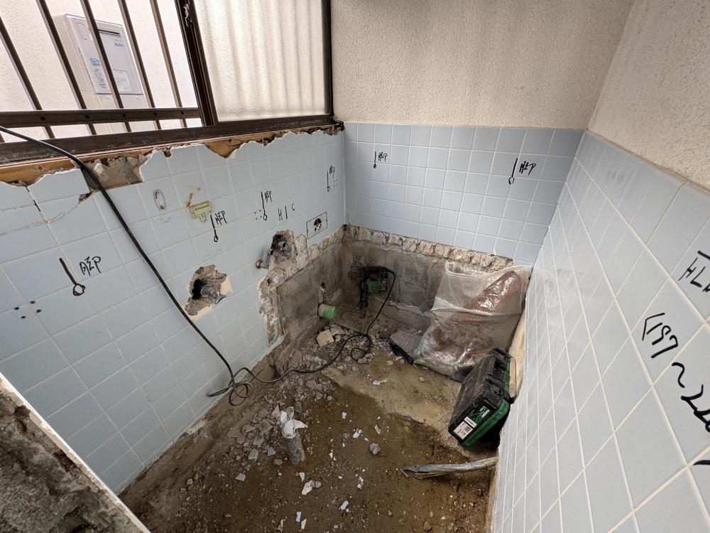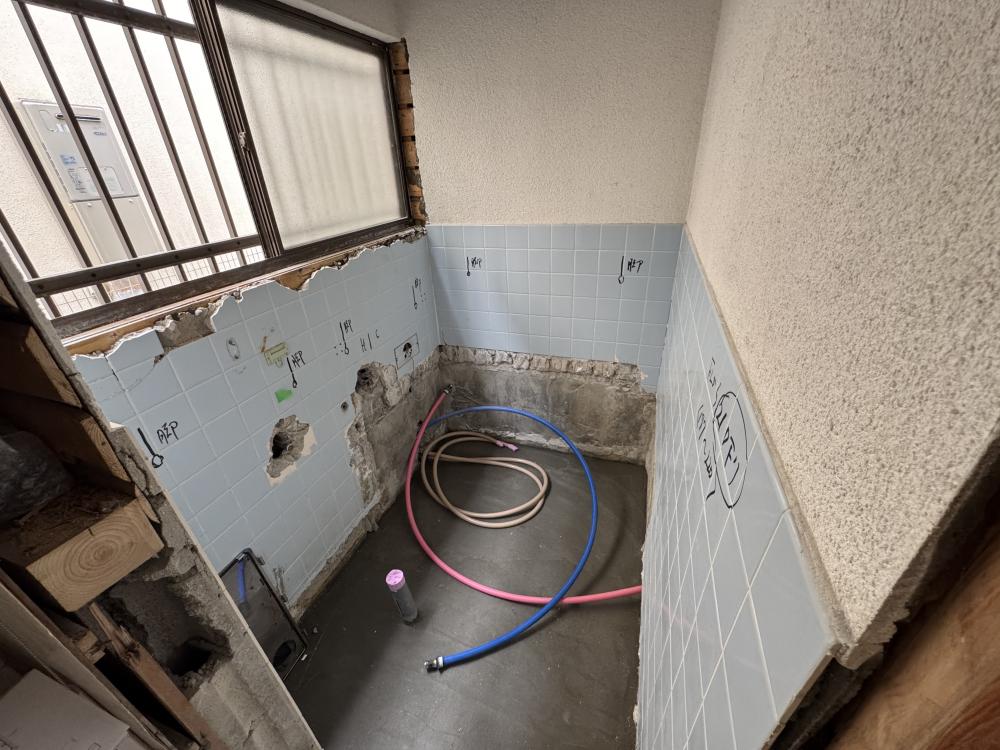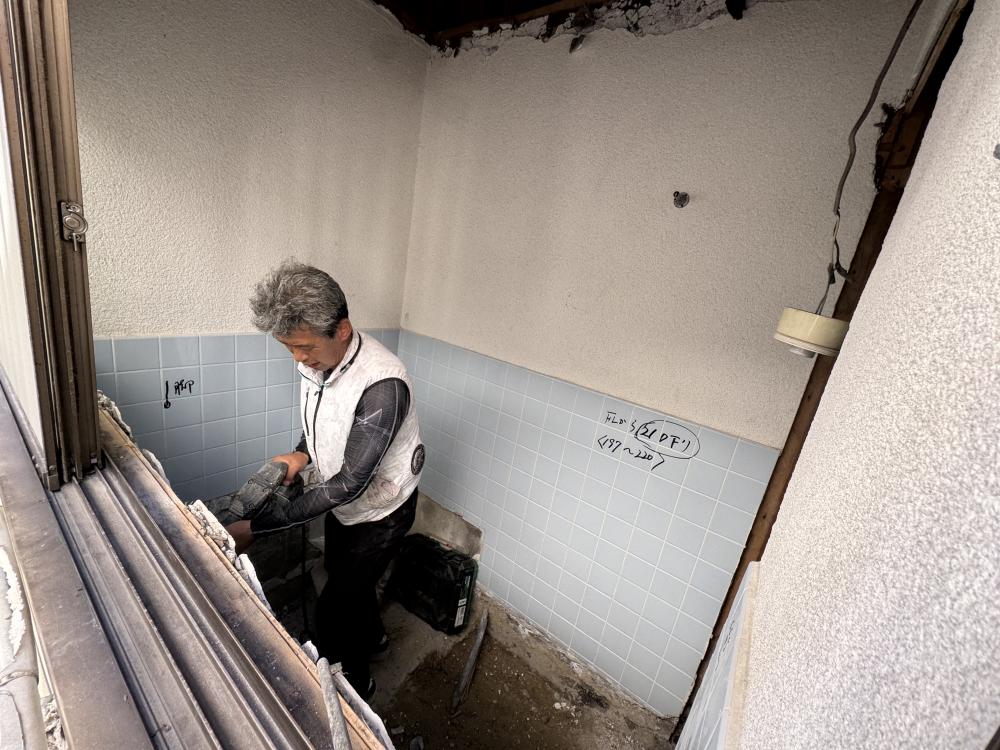 二日目スタートです!昨日で解体は完了!今日はユニットバスを設置する準備を進めていきます!