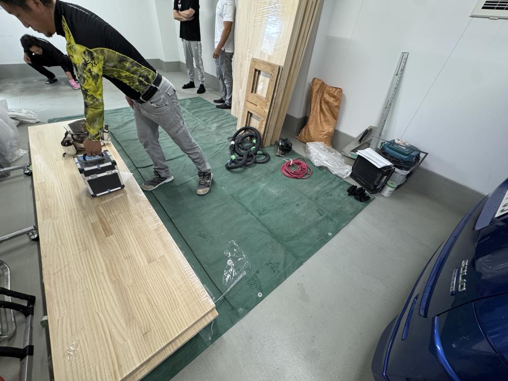 作業スタートです!シートを広げて作業スペースを養生出来たら作業を始めて参ります!