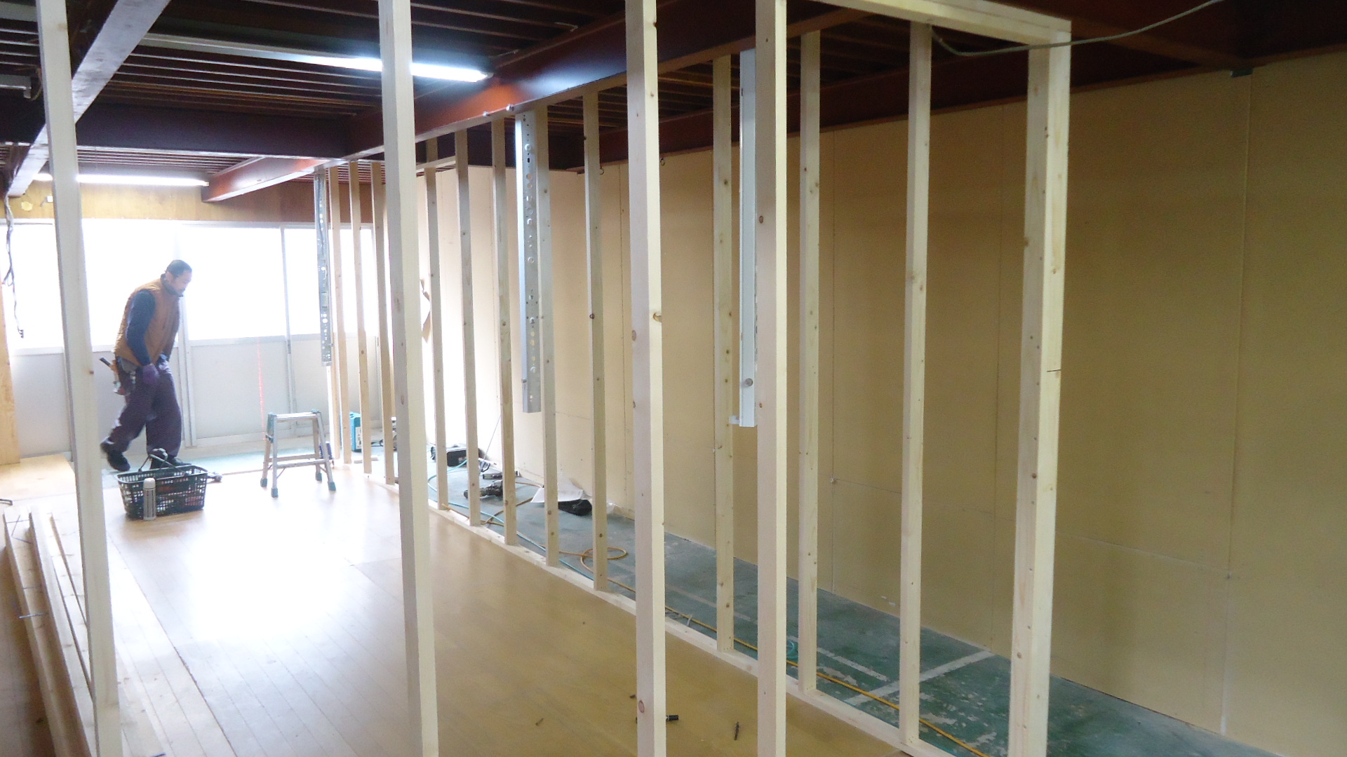 順調に進行中です!ほぼ間仕切りの下地が完成いたしました!