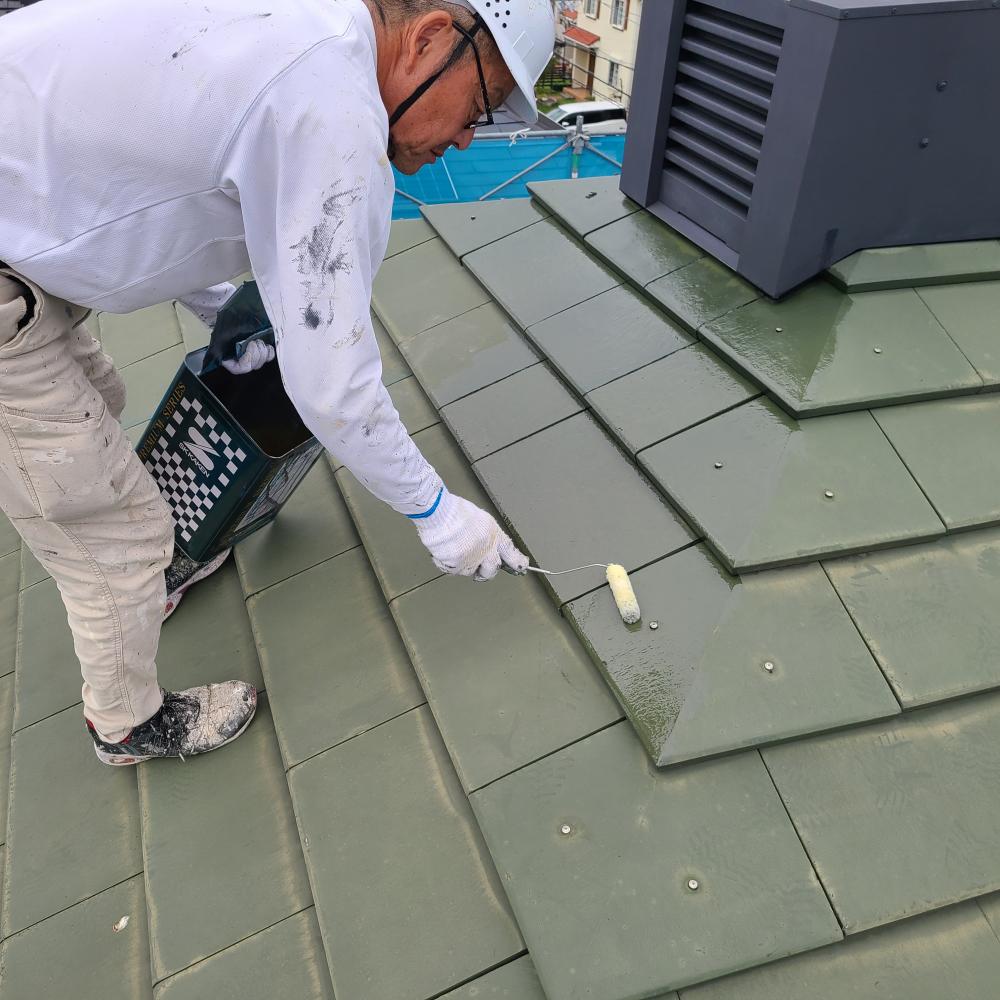 現在、木津川市E様邸にて施工中の屋根塗装工事ですが、順調に進んでおります!