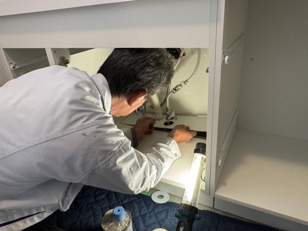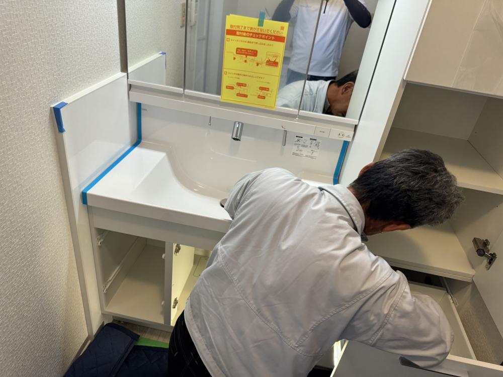 新しい洗面台を取り付けてきます!自動水栓を採用しました