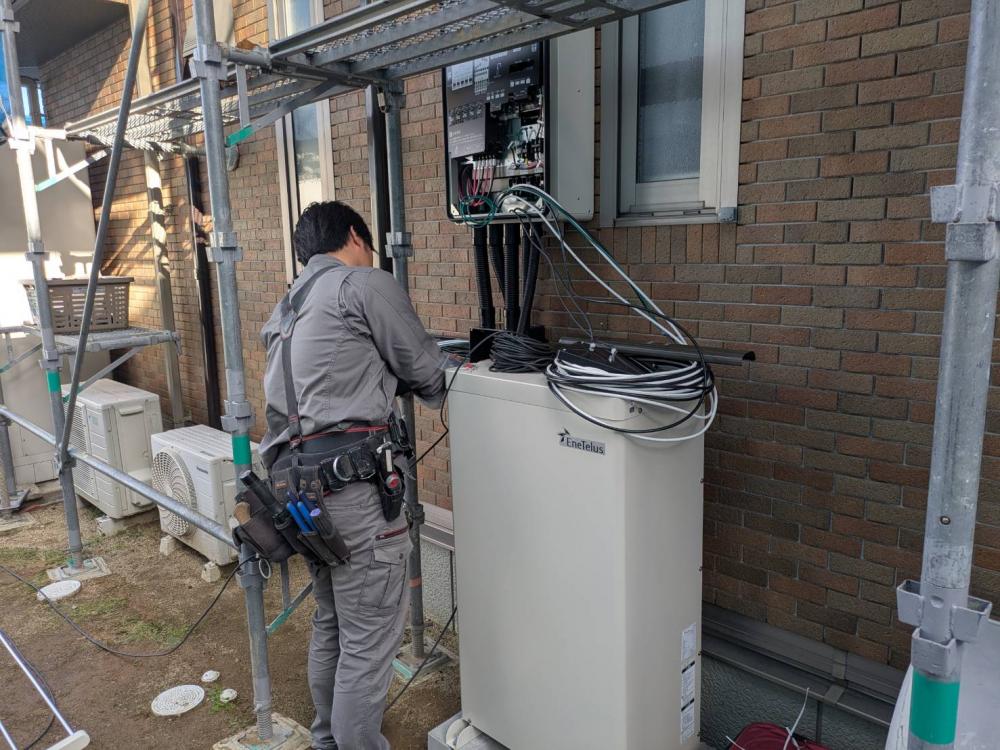 パワーコンディショナーの設置も完了し、蓄電池の取り付けが始まりました!