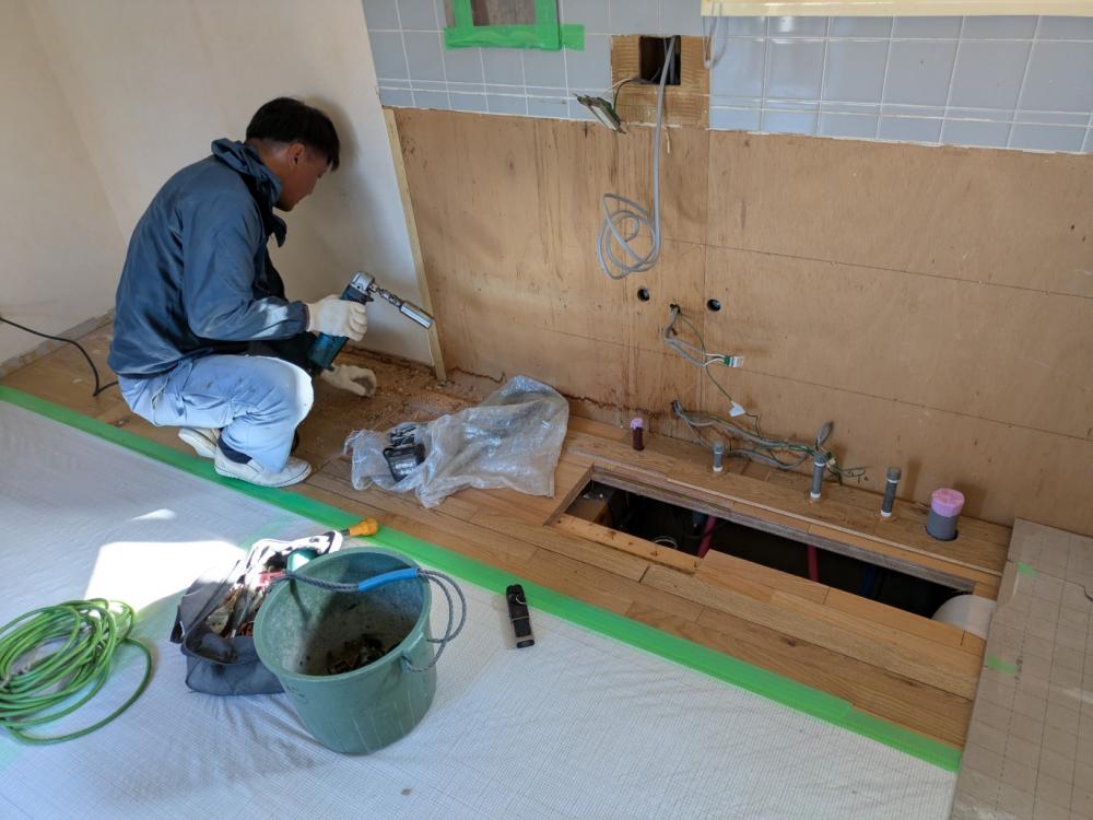 古いキッチンの解体が終了し新しいキッチンの取り付け準備にかかります!