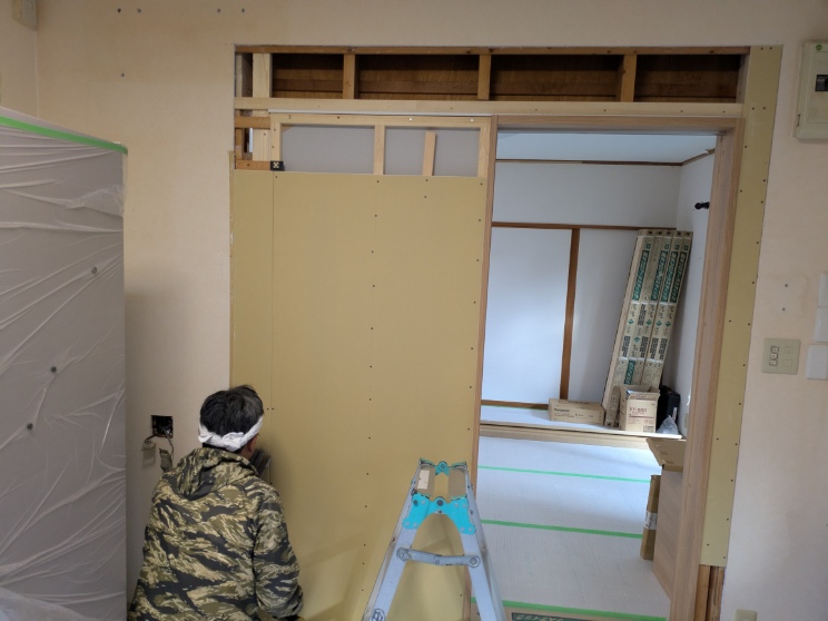 引違で隙間風のあるキッチンへの扉も気密性のある片引き戸に新しく取り換えていきます!