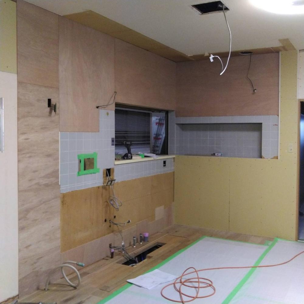 取り付け前の下地の状況です。水道配管の位置や電気配線の最終確認を行っていきます!