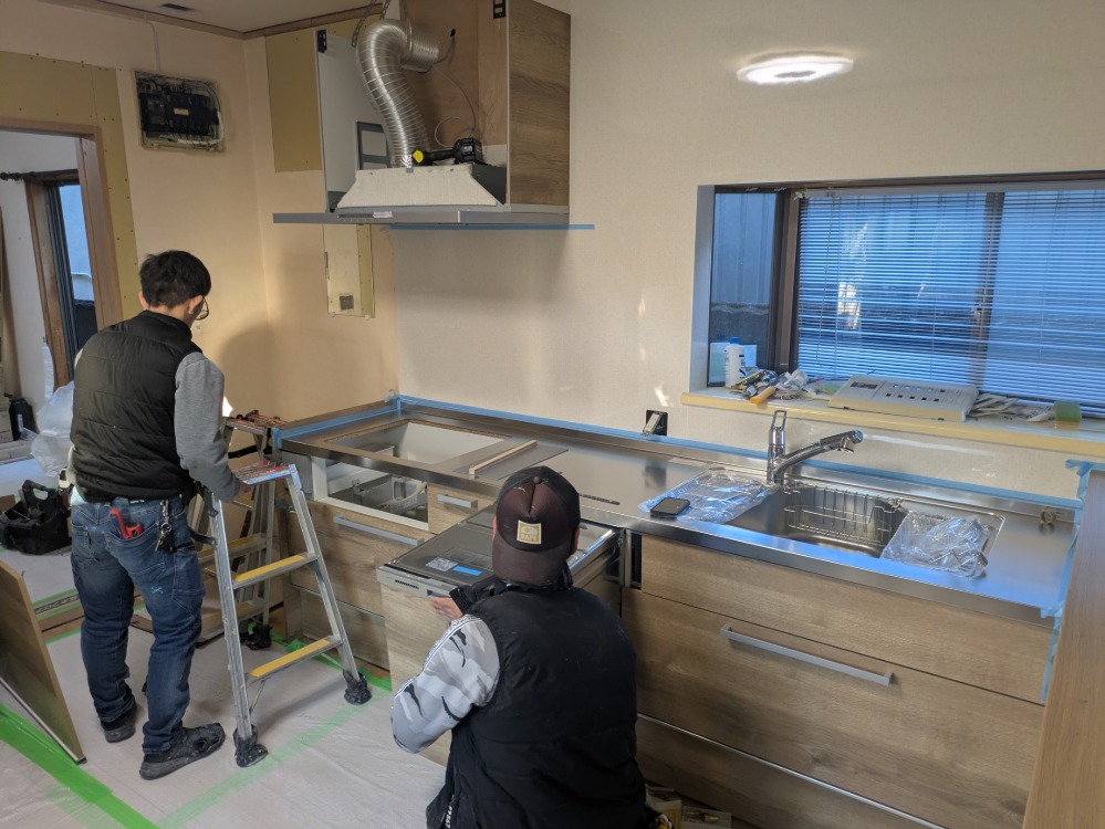 ステンレスの天板の取り付けも終わり、完成間近です!
