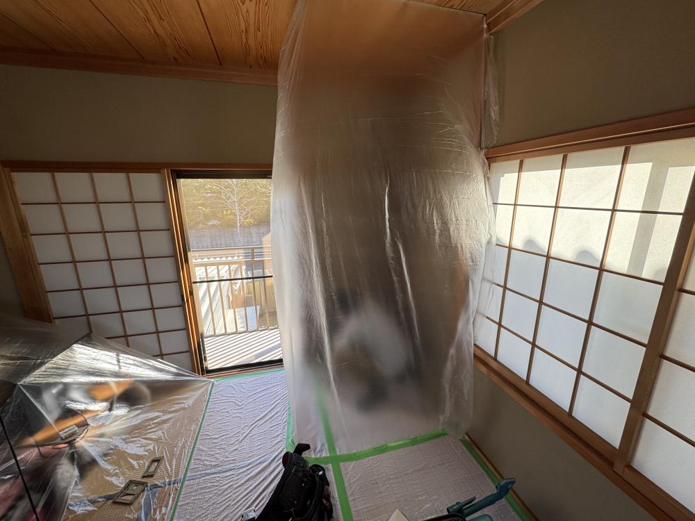 どんな工事もまずは養生から!解体前にまずは養生ですね。工事対象外に影響が出ないよう心掛けております。