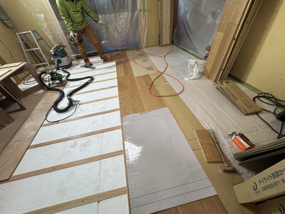 和室はフローリングを張って大工工事は終了となります。和室がどのように仕上がるのか楽しみですね!