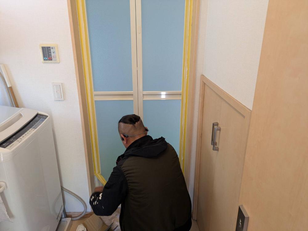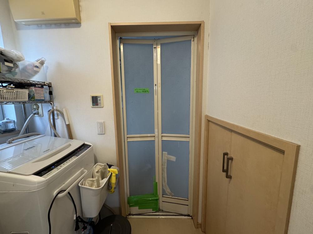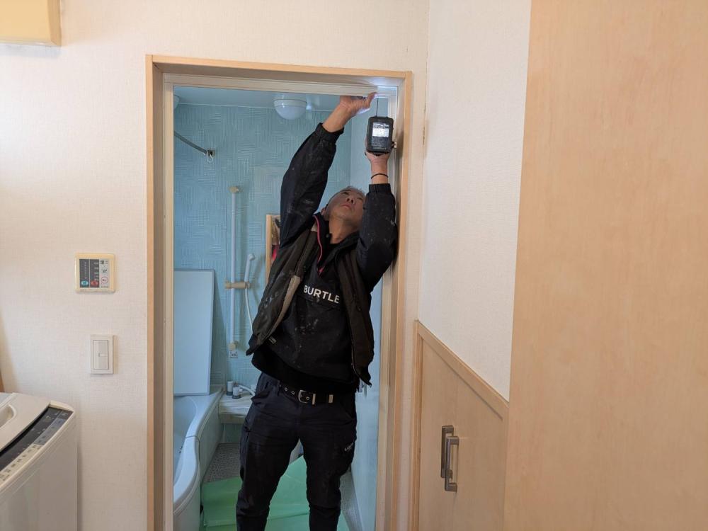 古いドアを取りはずして新しい枠を取り付けていきます!