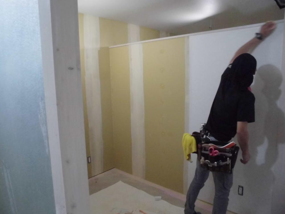 壁紙を貼る前のパテ処理の状況ですね。この工程は大変重要です。